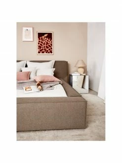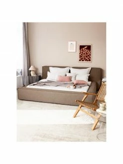 Westwing Collection Lit en tissu capitonné brun avec rangement Lennon, larg. 140 x long. 200 cm