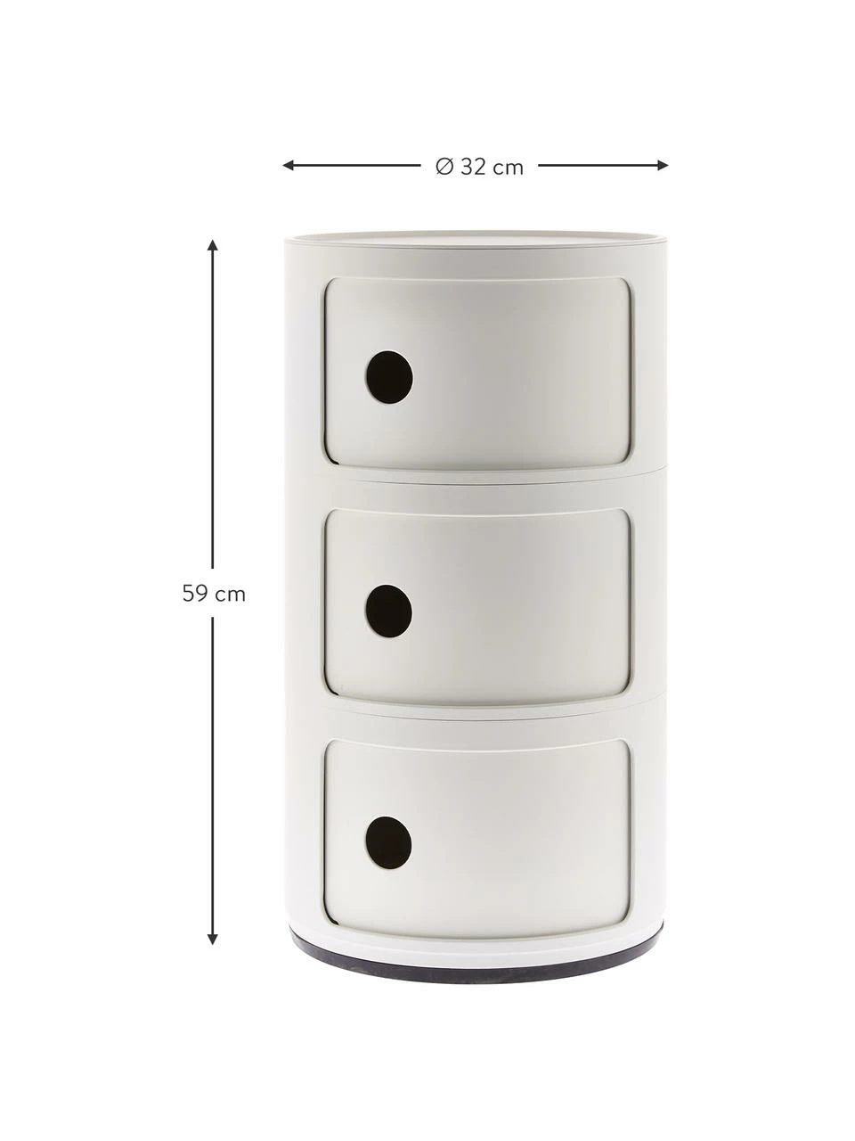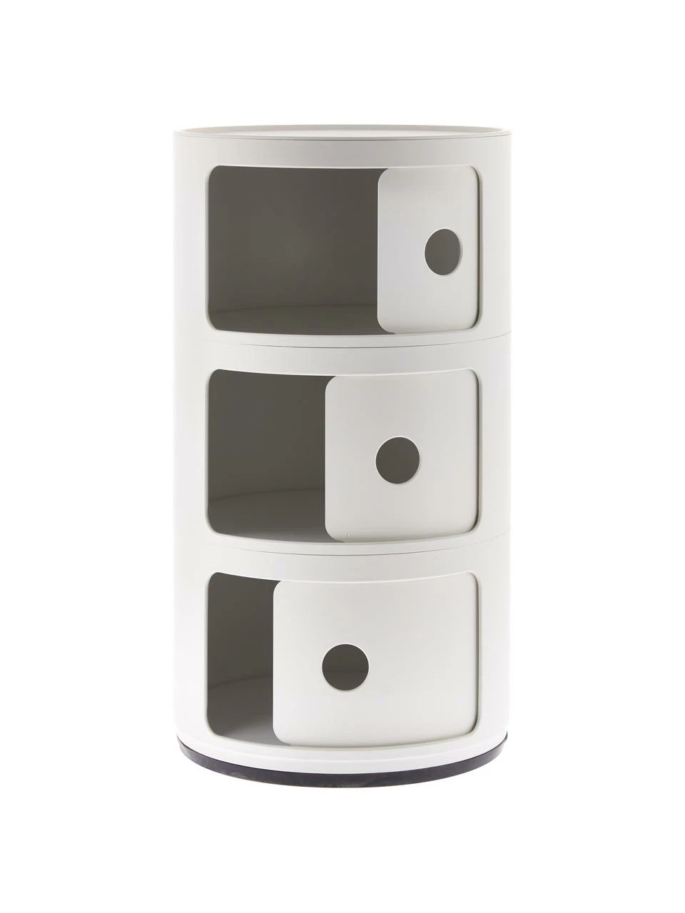 – Meuble composĂ© de 3 compartiments de stockage ronds avec portes coulissantes