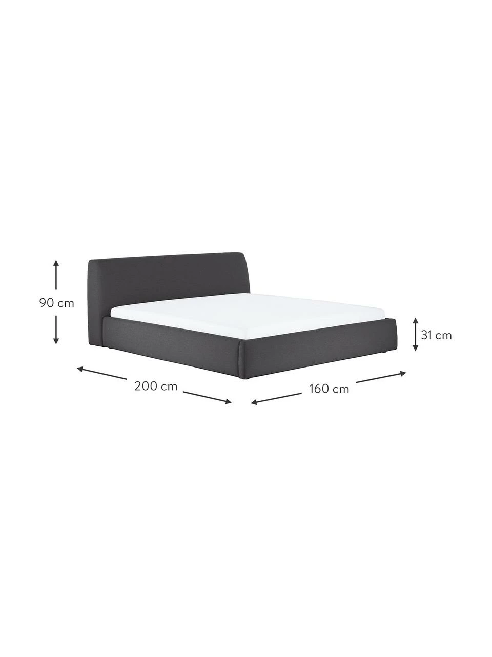 – Lit rembourrĂ© avec une tĂŞte de lit confortable et coffre de rangement
