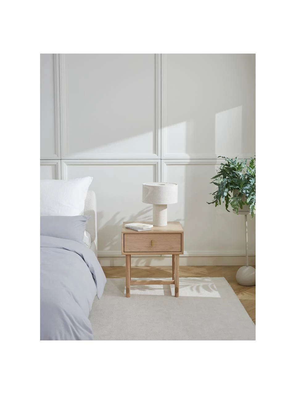 La table de chevet est livrĂ©e dans un emballage peu encombrant et nĂ©cessite la fixation des pieds pour le montage. Afin de garantir une sĂ©curitĂ© maximale, ce meuble est prĂ©vu pour ĂȘtre fixĂ© au mur. Veuillez tenir compte de la nature du mur lors du choix et de l’utilisation des vis et des chevilles.